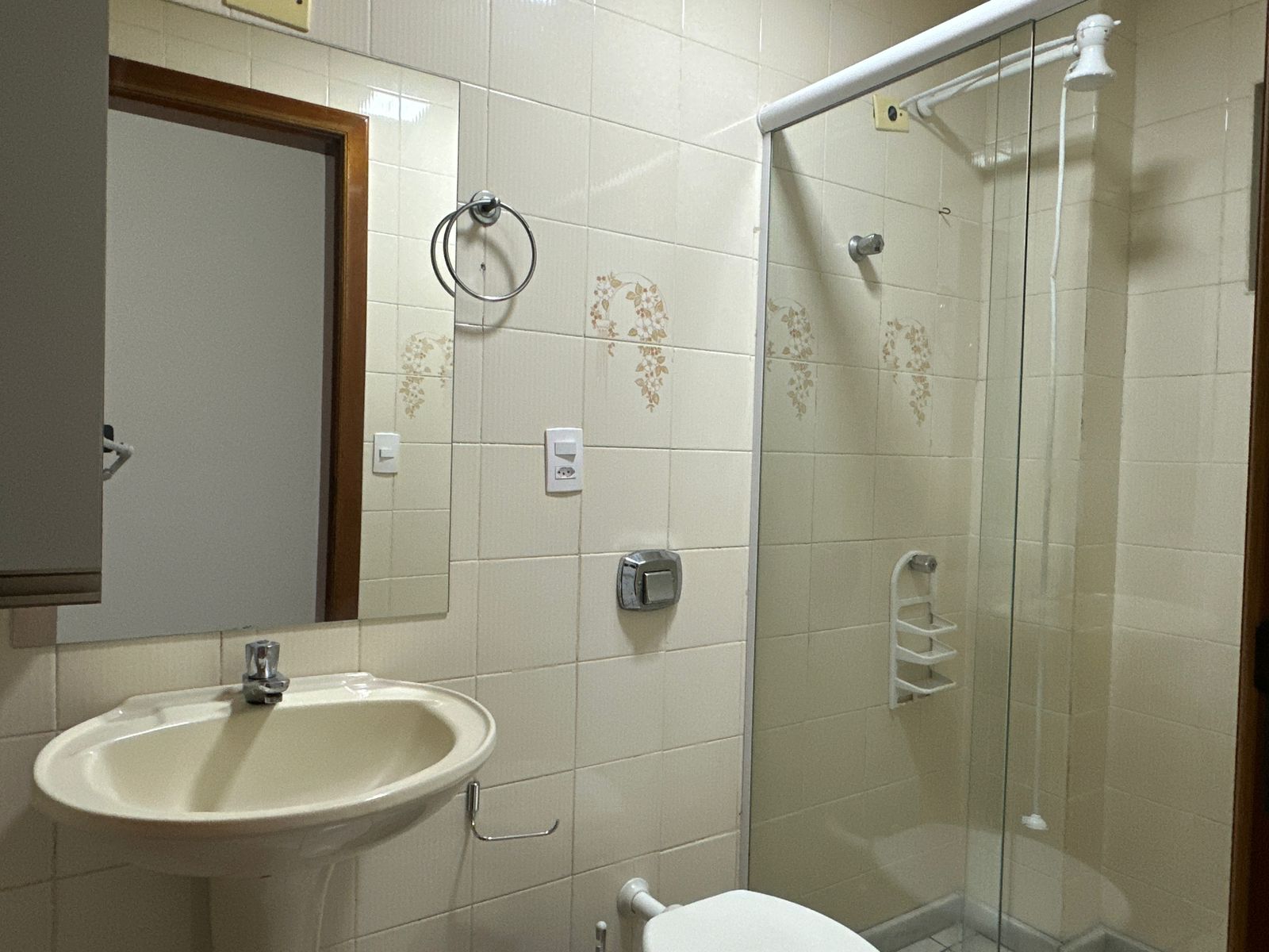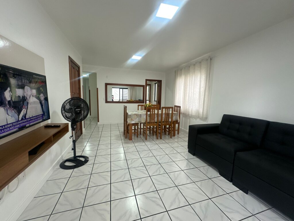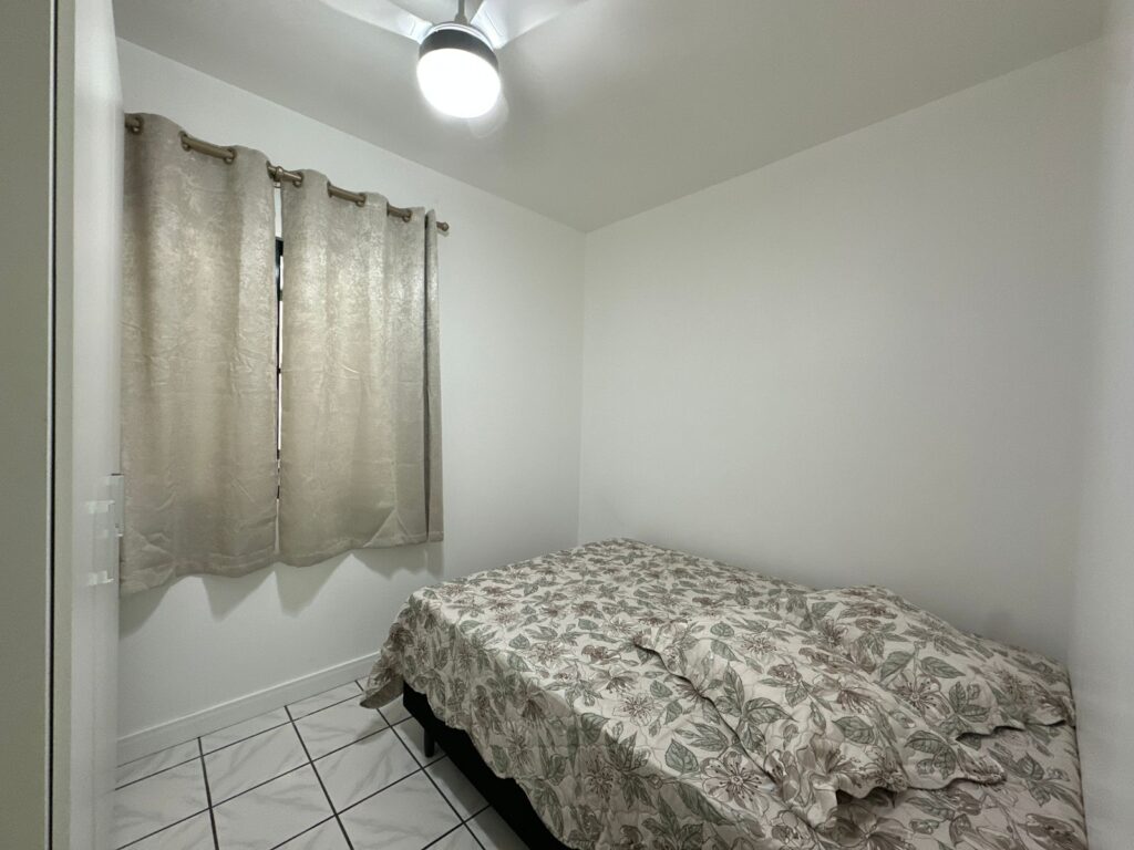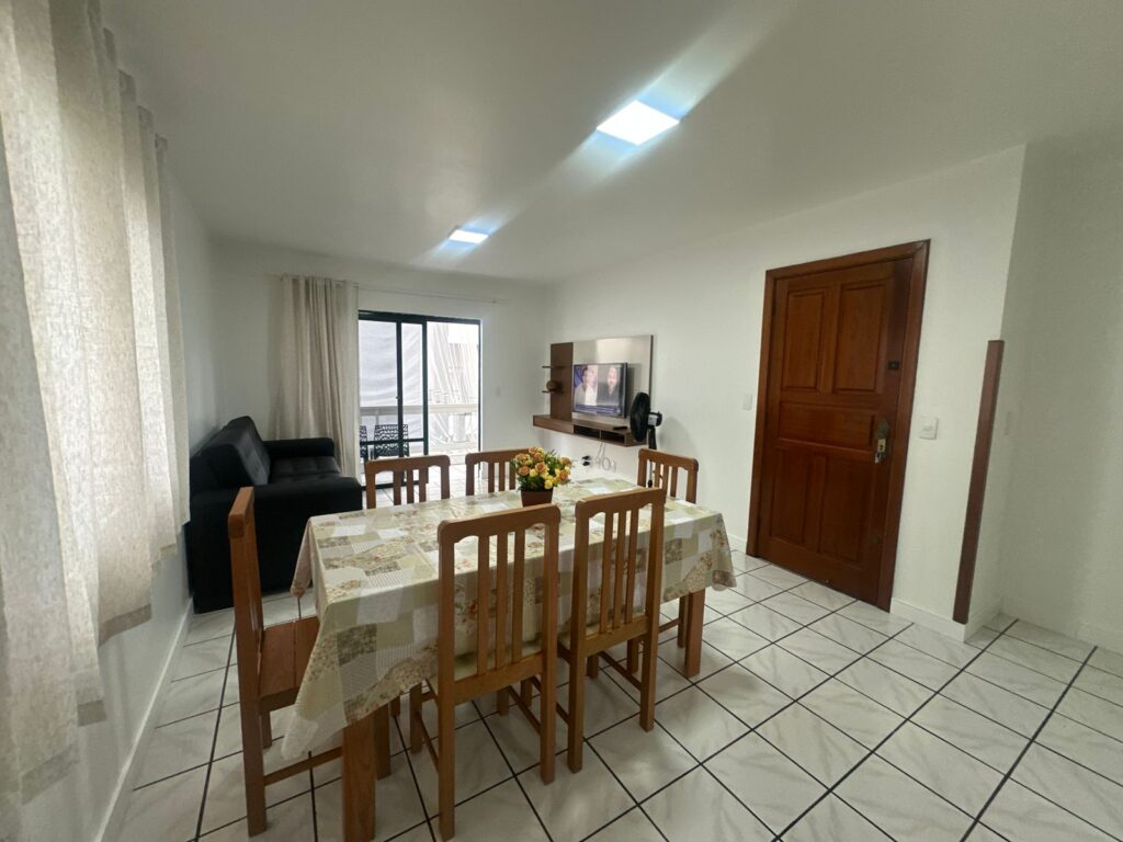 Apto com 3 Dorm, sendo 1 suíte, 1 banheiro social, 3 camas box de casal, 2 colchões avulsos de solteiro, 2 ar condicionados split, 1 ventilador de teto, 1 ventilador portátil, 1 tv 42”, 1 geladeira duplex, 1 cooktop, 1 forno elétrico, 1 máquina de lavar. Acomodação p/ no MÁXIMO 8 pessoas. Sacada c/ vista p/ o mar e SEM CHURRASQUEIRA. O prédio dispõe de 1 churrasqueira coletiva, cujo uso está condicionado à disponibilidade, bem como às regras do mesmo. 1 Vaga de garagem p/ veículo PORTE MÉDIO, sendo o acesso a mesma c/ rampa estreita.