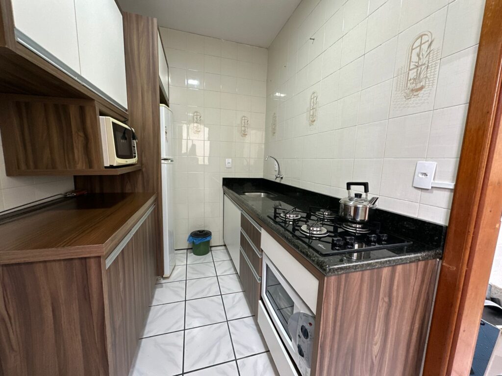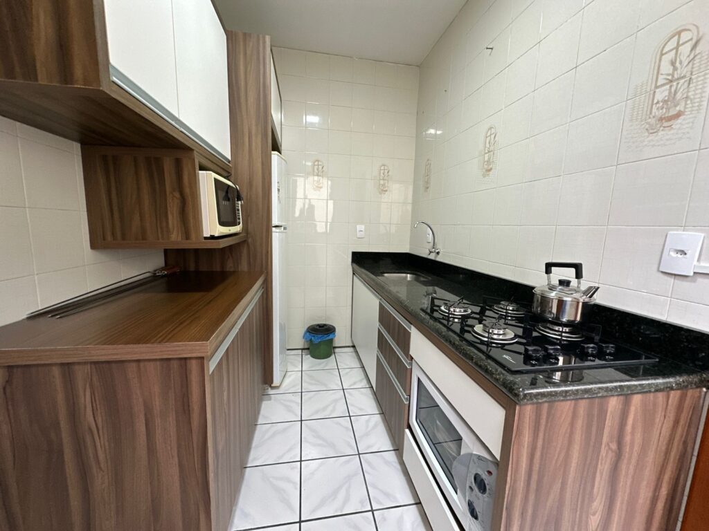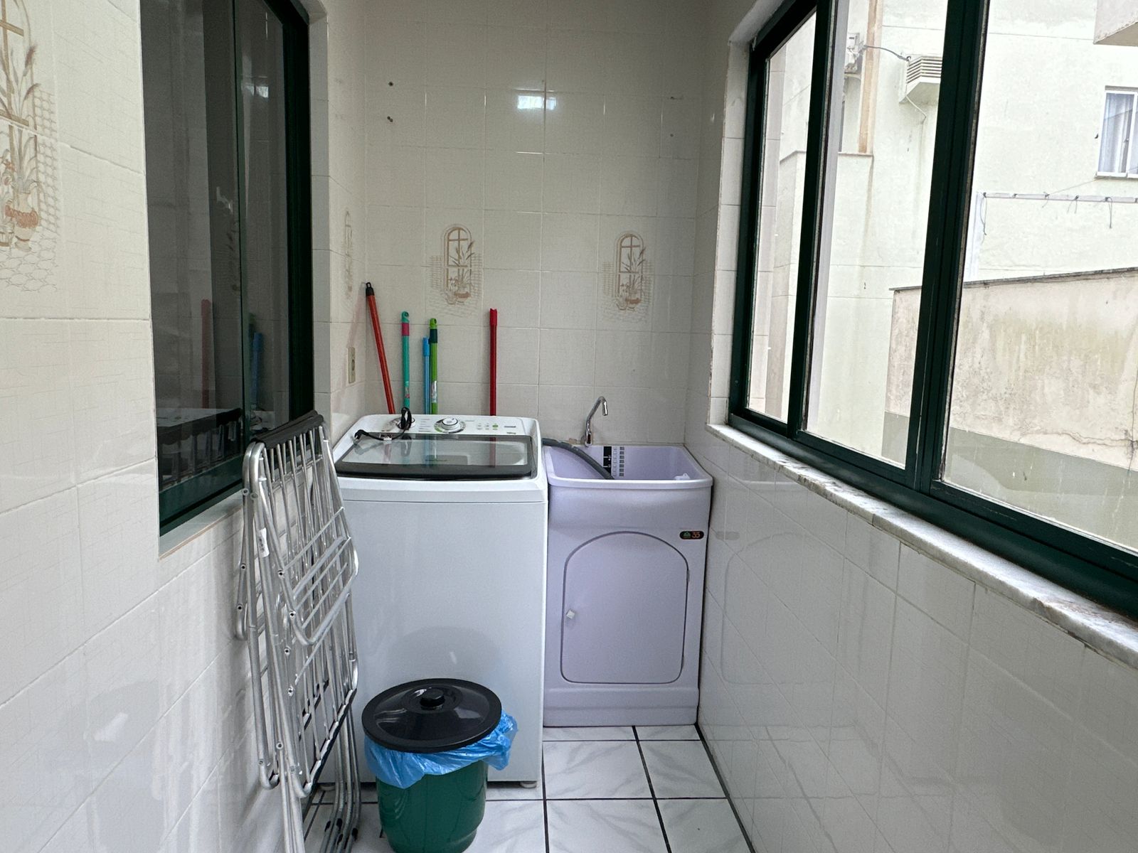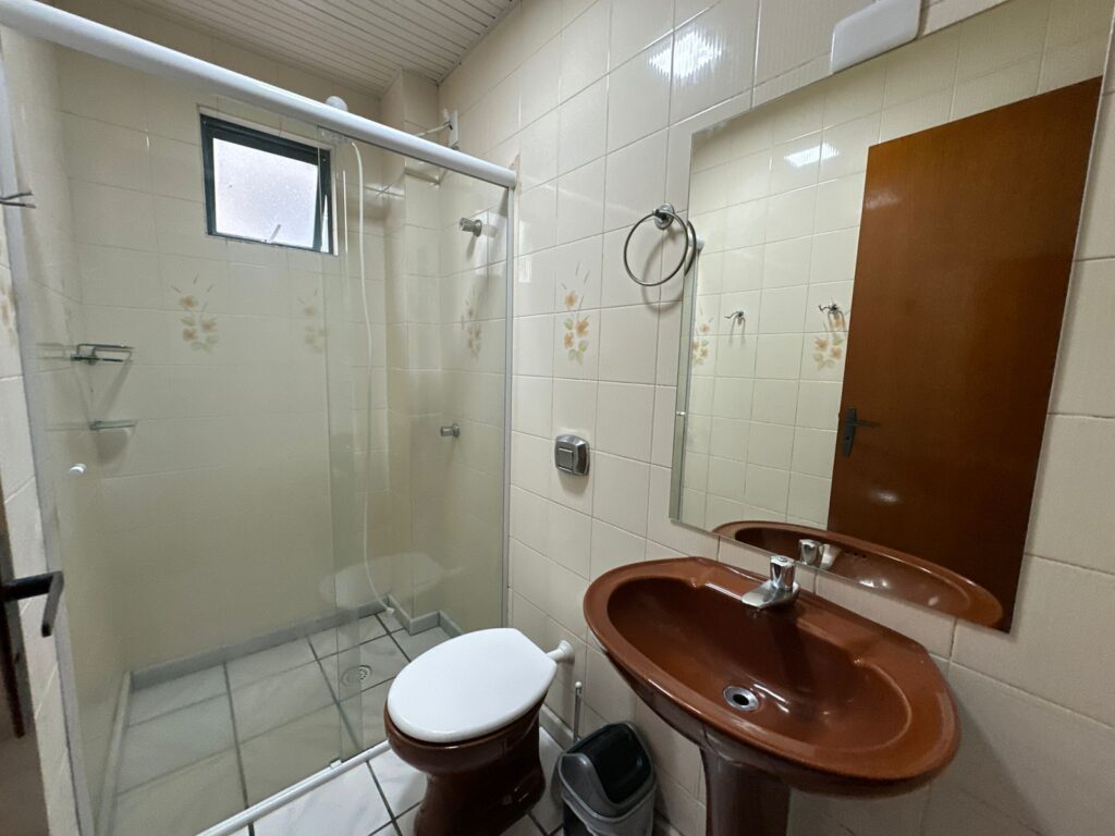 Apto com 3 Dorm, sendo 1 suíte, 1 banheiro social, 3 camas box de casal, 2 colchões avulsos de solteiro, 2 ar condicionados split, 1 ventilador de teto, 1 ventilador portátil, 1 tv 42”, 1 geladeira duplex, 1 cooktop, 1 forno elétrico, 1 máquina de lavar. Acomodação p/ no MÁXIMO 8 pessoas. Sacada c/ vista p/ o mar e SEM CHURRASQUEIRA. O prédio dispõe de 1 churrasqueira coletiva, cujo uso está condicionado à disponibilidade, bem como às regras do mesmo. 1 Vaga de garagem p/ veículo PORTE MÉDIO, sendo o acesso a mesma c/ rampa estreita.