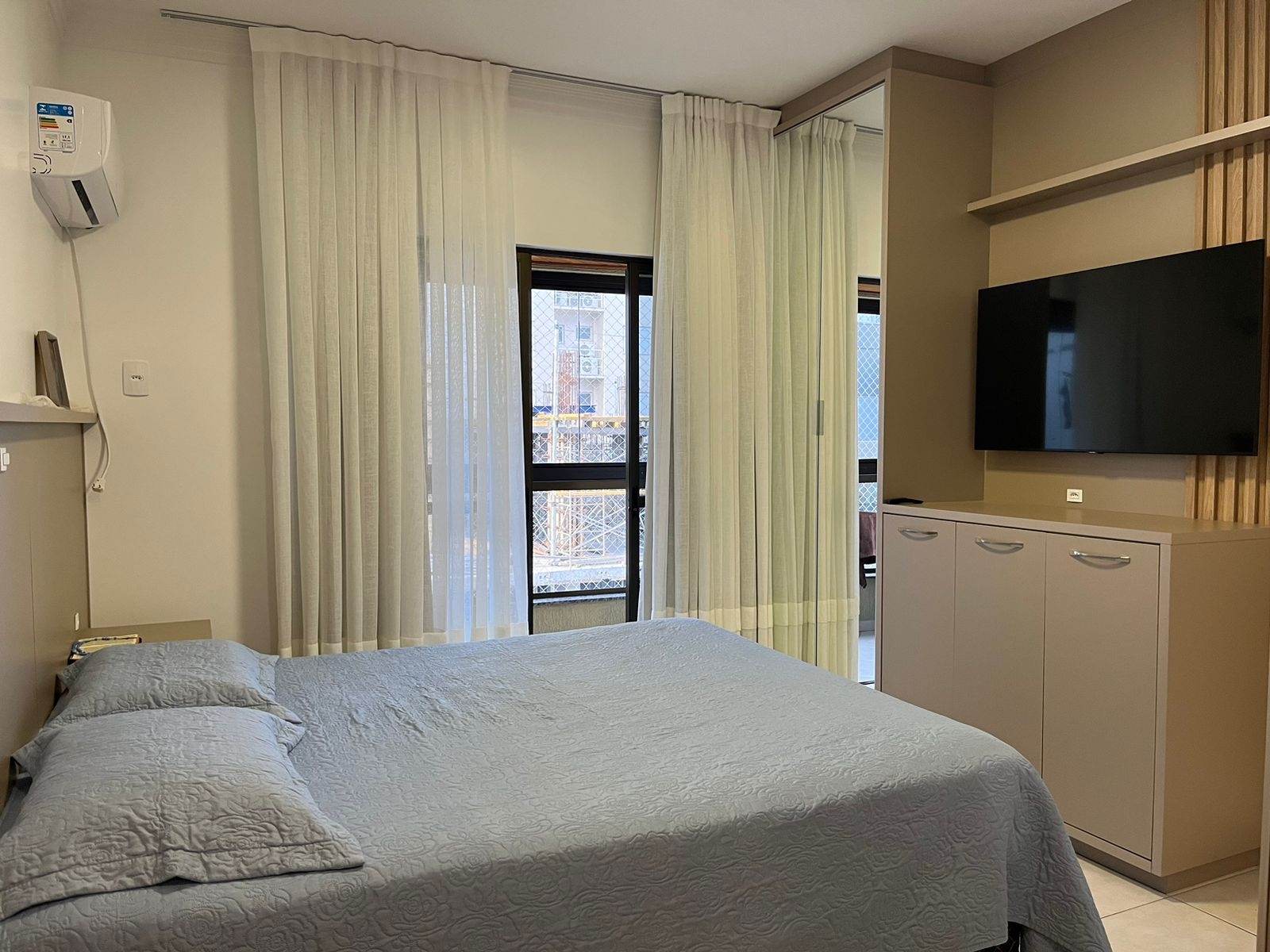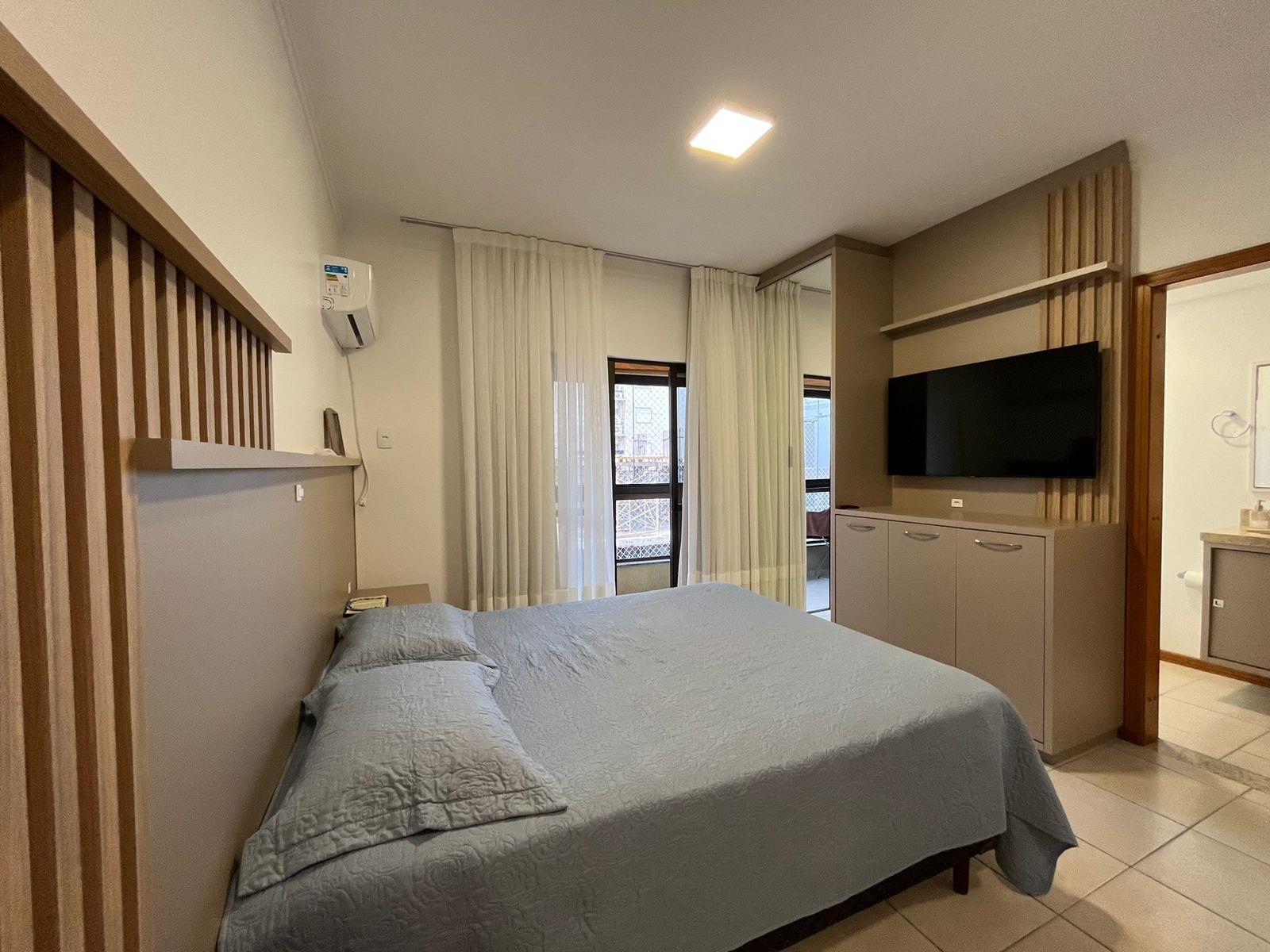 Apto com 3 suítes, 1 cama box queen, 2 camas box casal, 2 colchões avulsos de solteiro, 3 ar condicionados splits, 2 tv’s, geladeira duplex, fogão cooktop, microondas e forno embutidos, maquina de lavar roupas, sacada com fechamento em reiki, tela de proteção na sacada e janelas dos quartos, Face Norte. Acomodação para no Máximo 8 pessoas. Vaga dupla de Garagem, NÃO comporta 2 veículos Grandes, é para veículos de PORTE MÉDIO. Lavabo NÃO estará disponível para uso, permanecerá fechado!